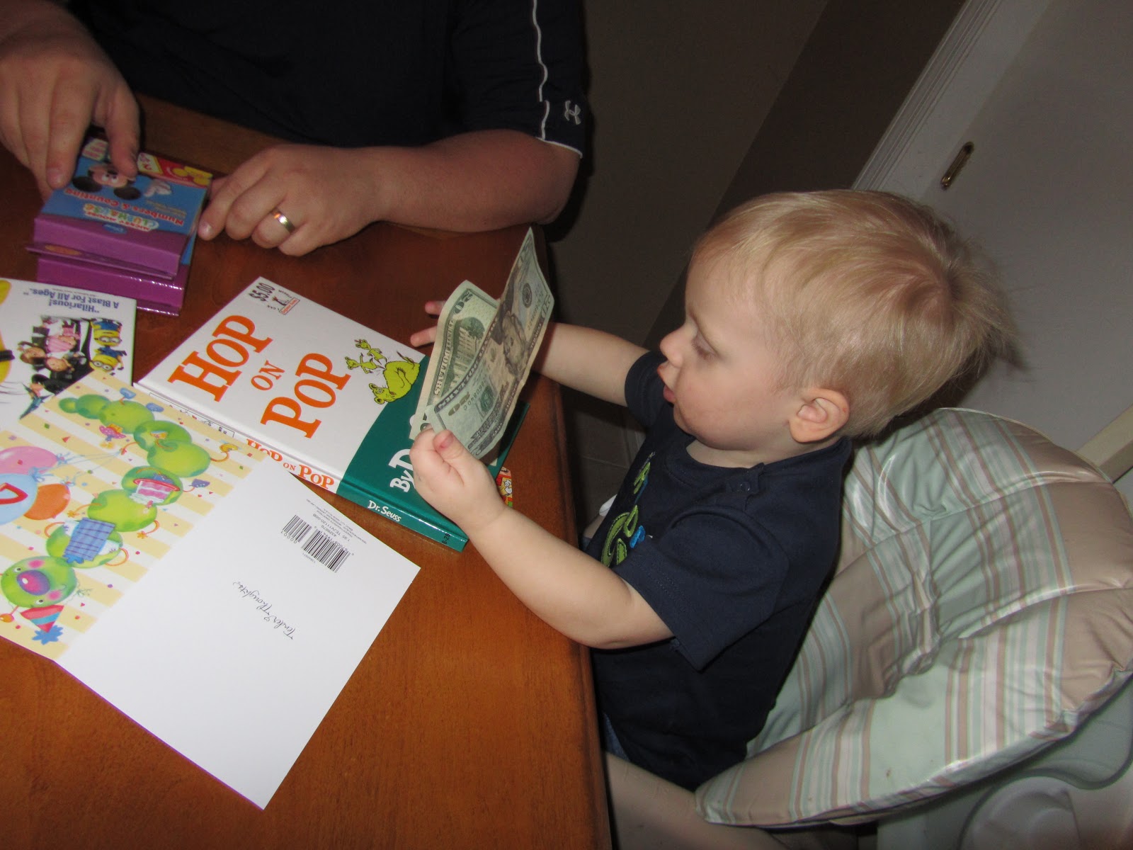 We finished the night by playing. Will was all over the place. At one point, he wanted all his clothes off except for his diaper, shoes, and socks. I am not sure why, but he the best time running around "nekked".